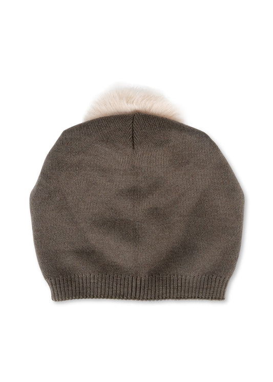 Brooklyn Beanie Army/Beige Faux Fur Pom