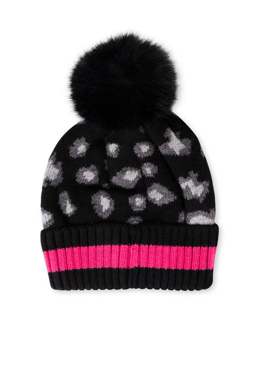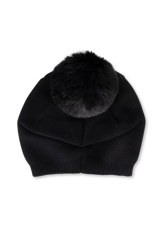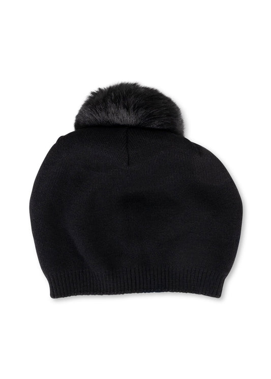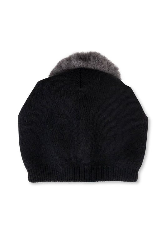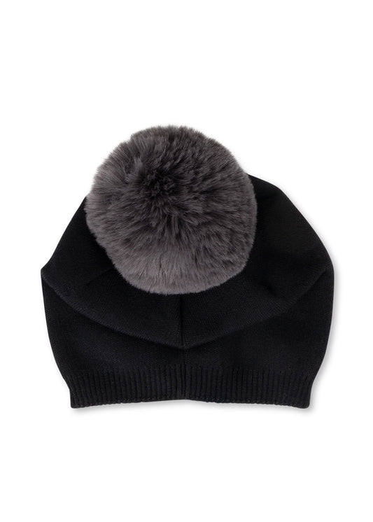 Brooklyn Beanie Black/ charcoal Faux Fur Pom - FINAL SALE
