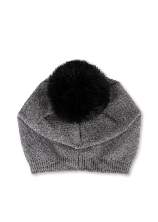 Brooklyn Beanie Charcoal/Black Faux Fur Pom