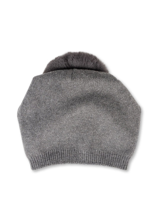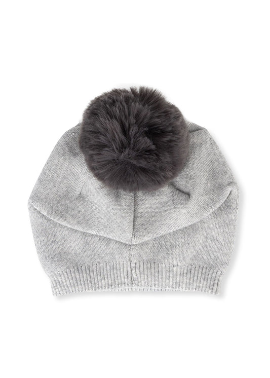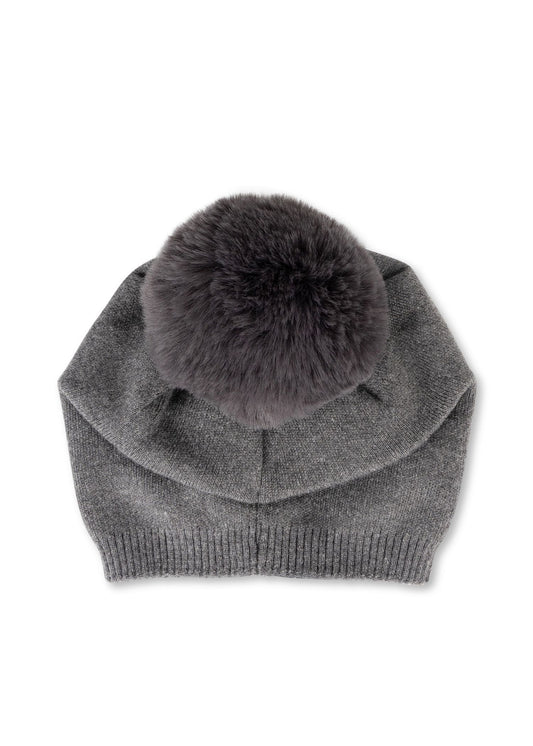 Brooklyn Beanie Heather/Charcoal Faux Fur Pom